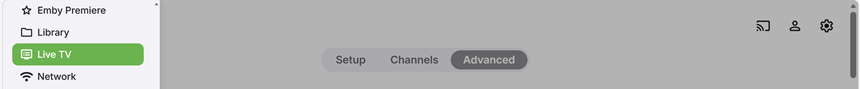 To set the optional Advanced settings, click Advanced in the administrator dashboard under the Live TV Menu.