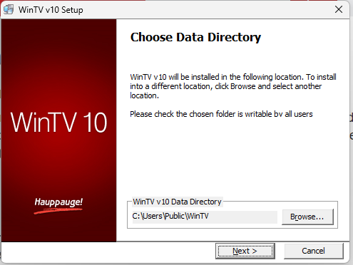 You will need first to install the Hauppauge WinTV app and go through the configuration process and ensuring latest drivers and channel data is in place. The product also needs to be activated. The earliest supported version is v8.5. The following is the link for the WinTV v10 app.